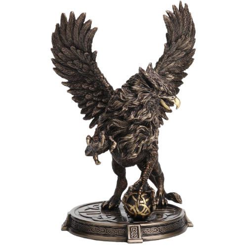 Featuring the legendary creature Gryphon proudly standing on a decorative platform with a Celtic knot